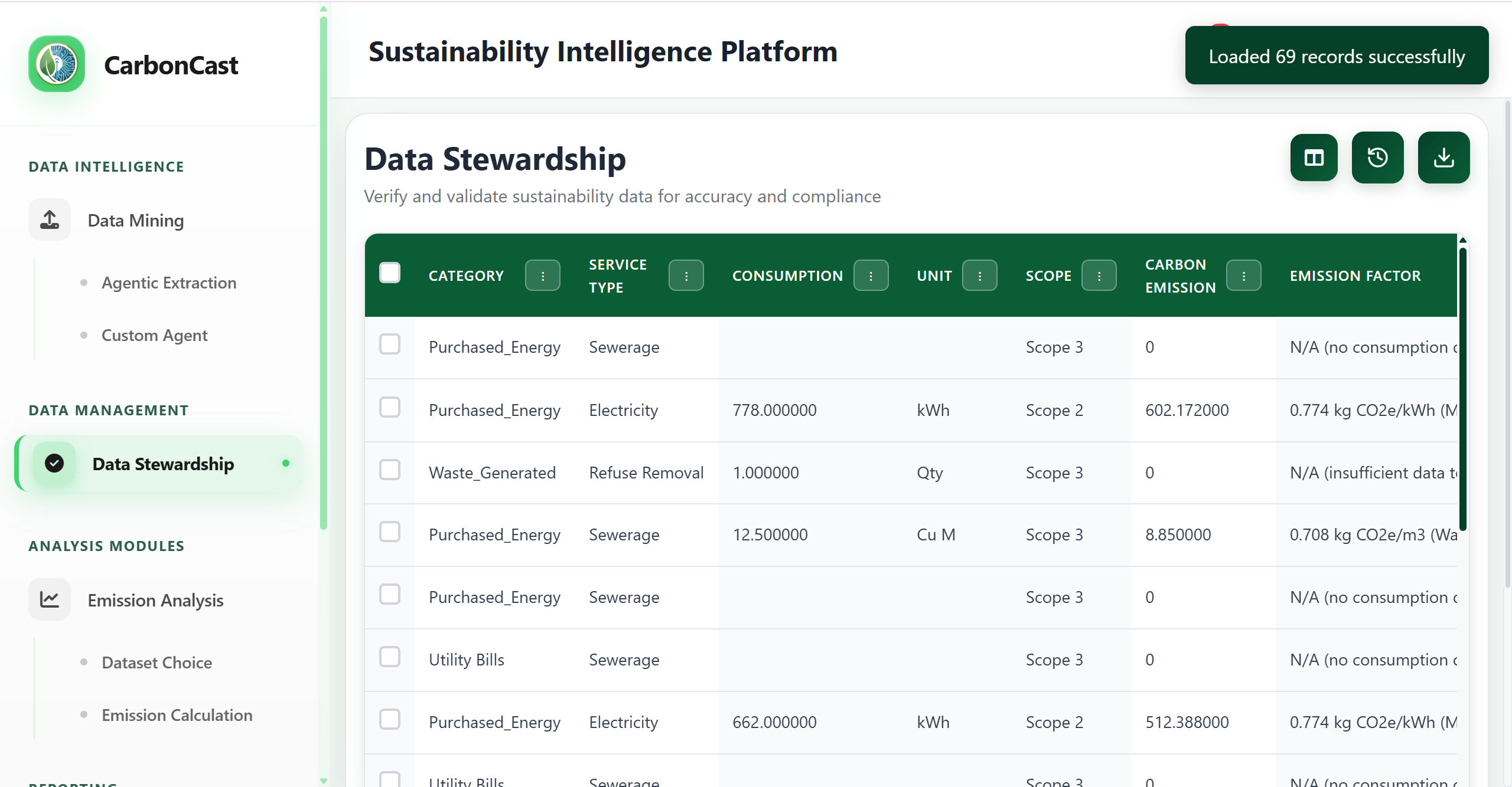 CarbonCast simplifies sustainability management by automating the journey from raw operational data to reliable ESG reporting.